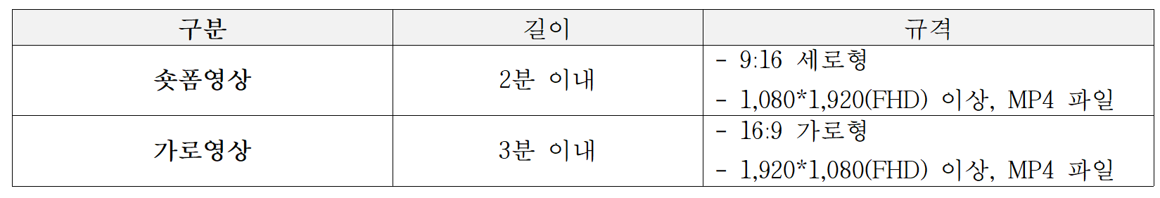 - 부산 웰니스 관광지 10선을 알릴 수 있는 효과적인 영상 홍보 콘텐츠 제작(2분 이내  숏폼(릴스, 숏츠, Vlog 등) 및 관광지 이야기를 담은 3분 내외의 가로영상